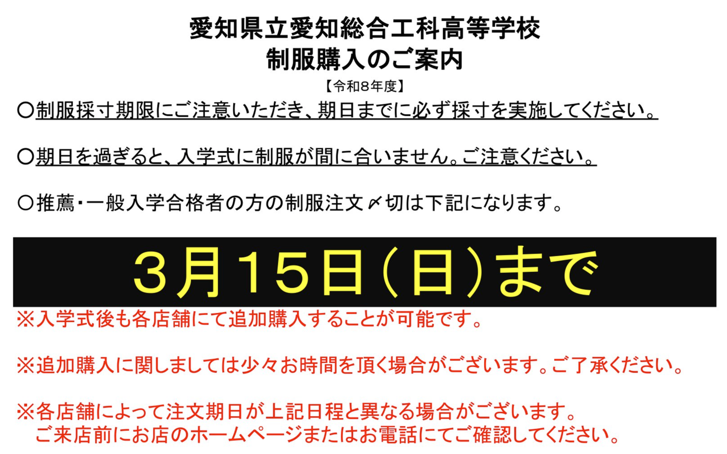 | 2026/02/20 令和8年度 制服購入について |