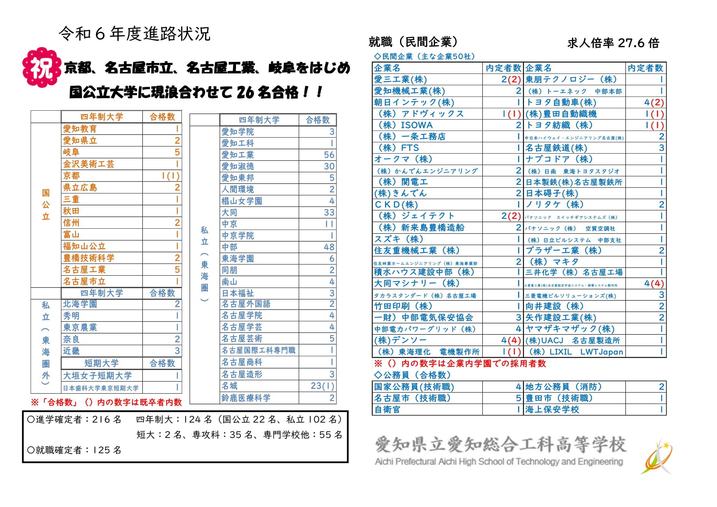 令和8年度愛知県立愛知総合工科高等学校推薦選抜実施要項を掲載しました。