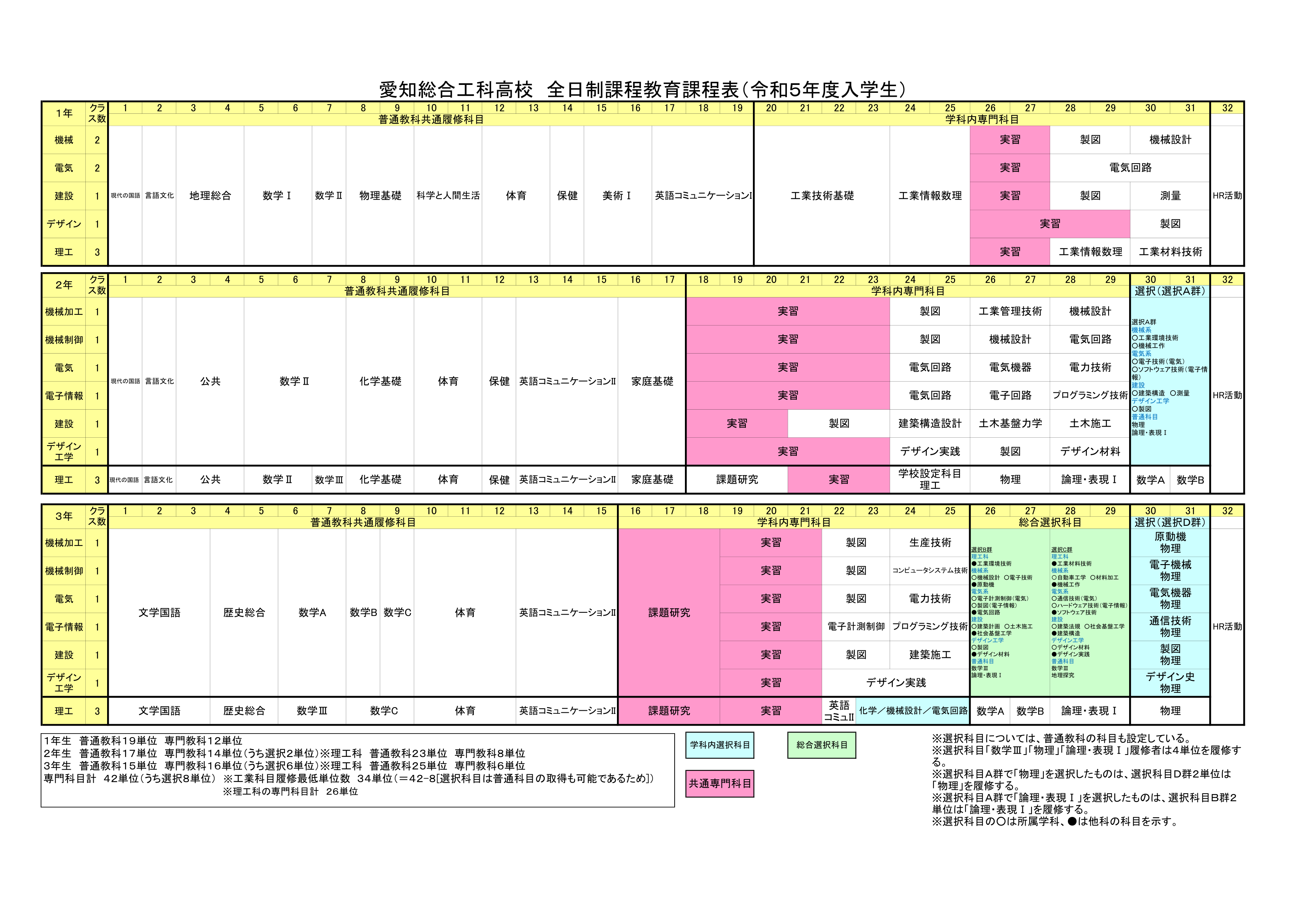 教育課程表(令和5年度入学生)