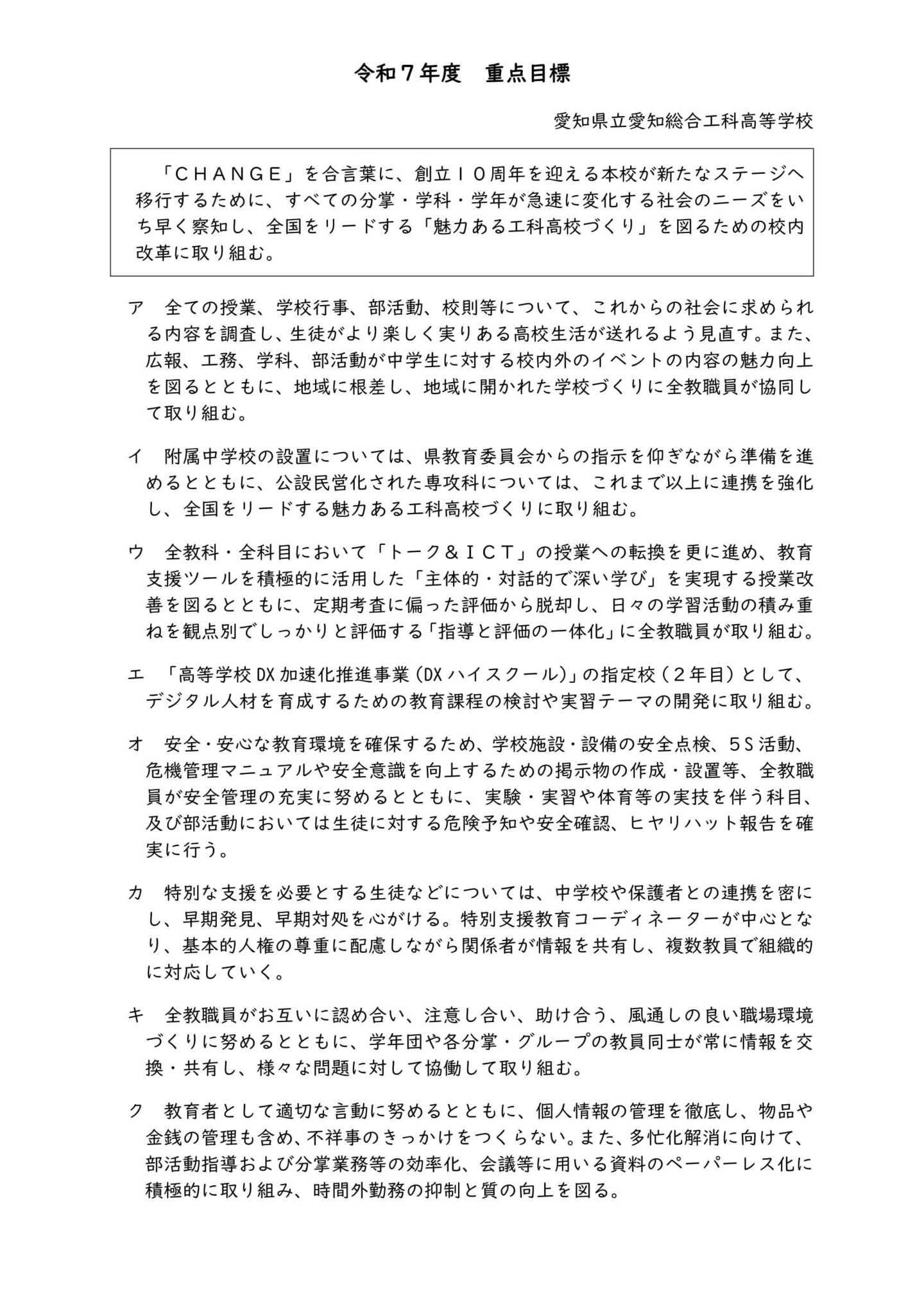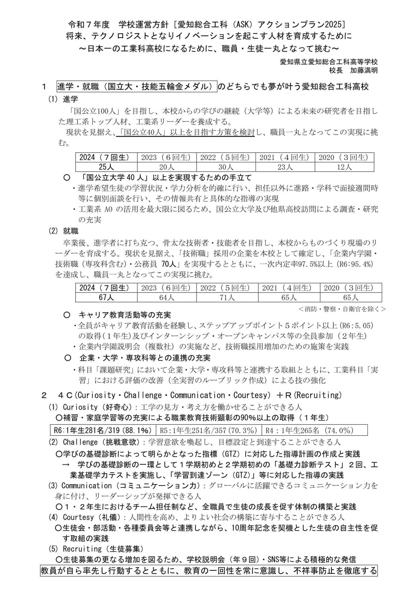 愛知総合工科高等学校スクールミッションとスクールポリシー